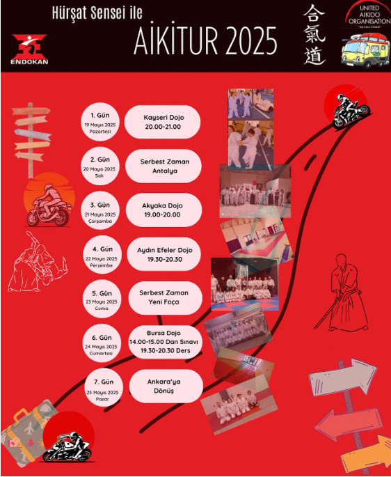 HÜRŞAT SENSEİ İLE AİKİTUR 2025Hürşat sensei (6. Dan) 19 mayıs pazartesi günü kayseriye geliyor. Tüm arkadaşları bekliyoruz! |  |